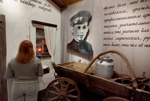 Сегодня, 25 сентября, в Дмитриевском краеведческом музее начала работу экскурсия «Артистическая судьба Ивана Суржикова», которая знакомит с творческим путём народного артиста России. Любовь к русской народной песне пронёс артист через годы войны.