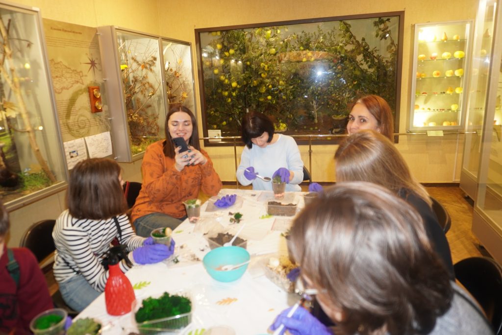 В завершении путешествия гости музея изготовили ботаническую композицию: флорариум, который предварительно заполнили содержимым собственного «культурного слоя».