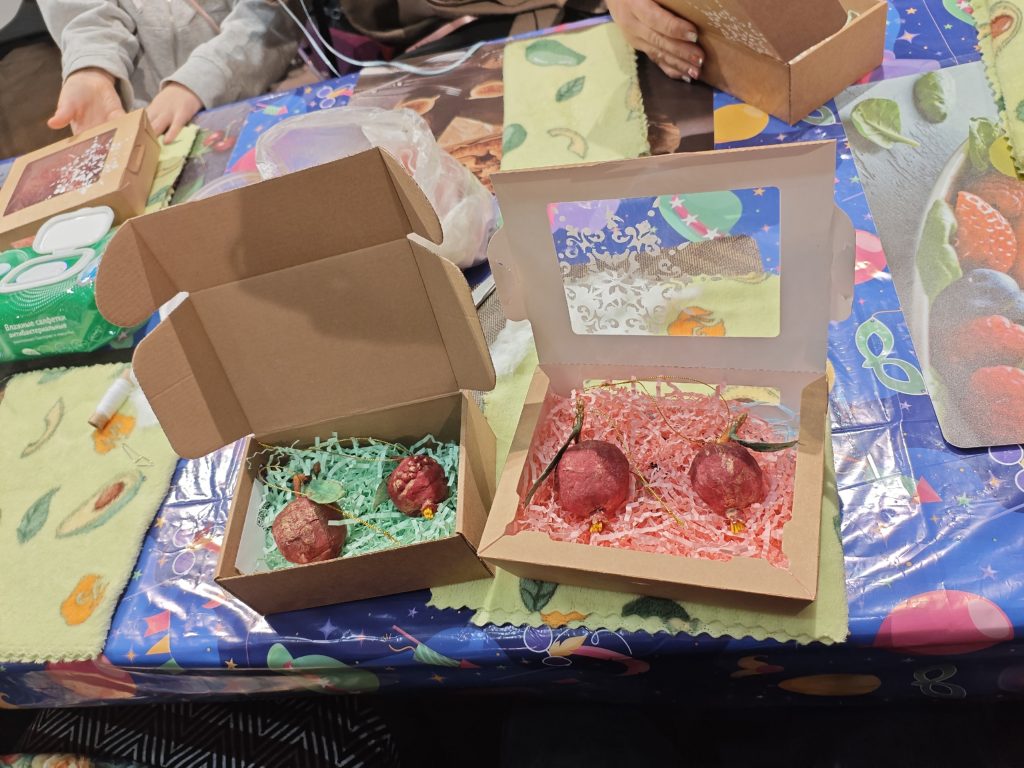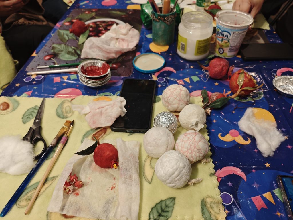 Участники мастер-класса изготовили два «Гранатика» для новогодней елочки.