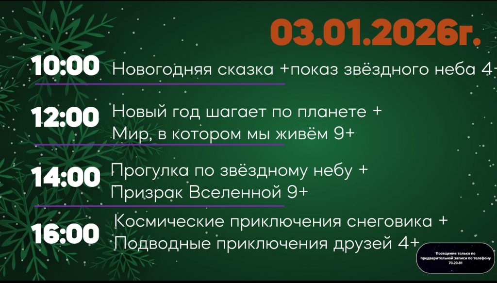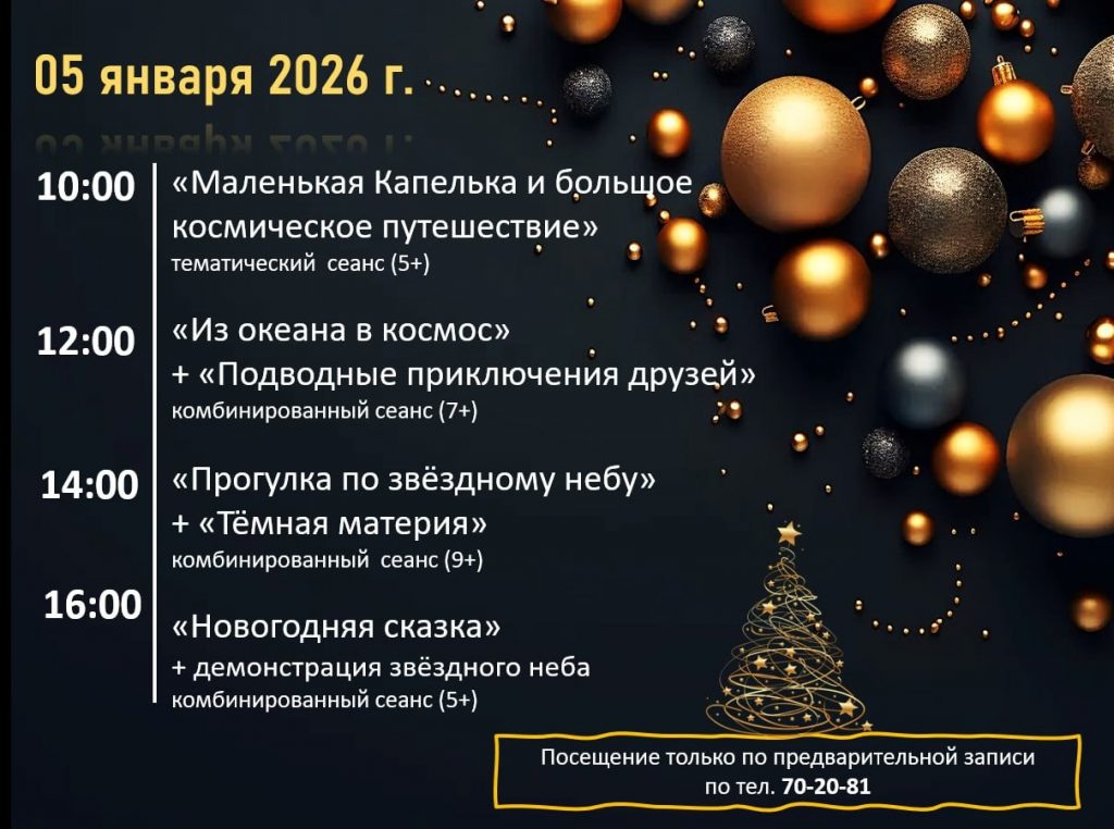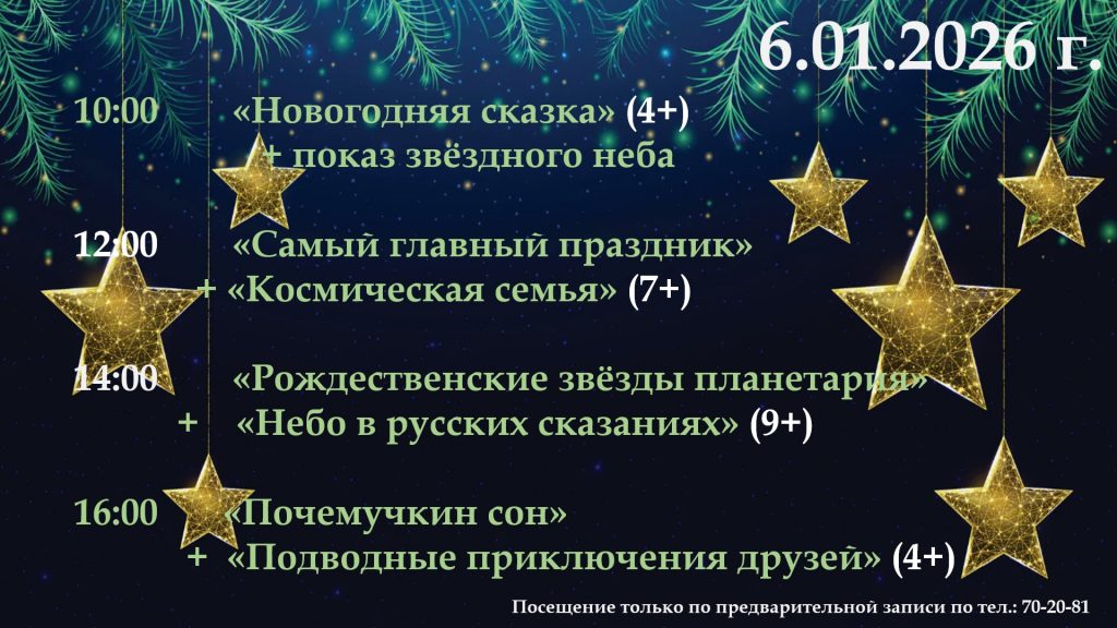 Приглашаем в планетарий 3, 5, 6, и 9 января!