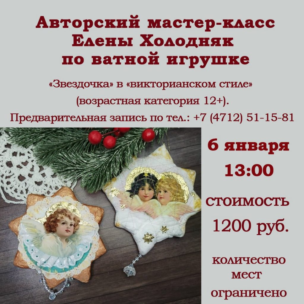 6 января в 13:00 приглашаем Вас посетить авторский мастер-класс Елены Анатольевны Холодняк по изготовлению ватной игрушки.