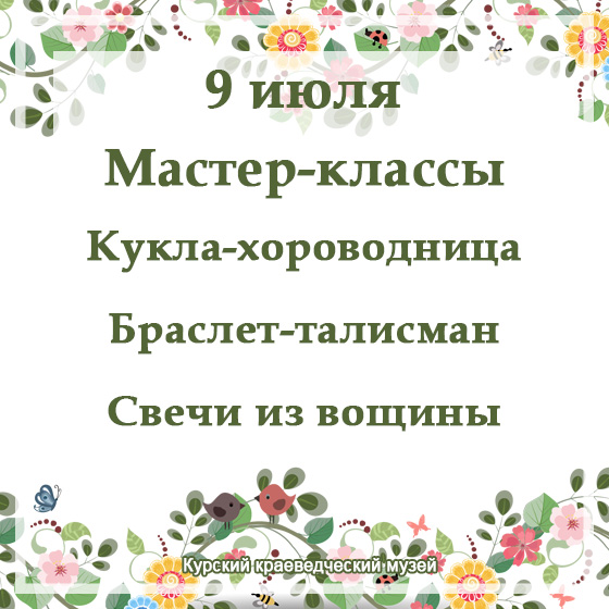 09 июля в 12.00 пройдут мастер-классы кукла-хороводница, браслет-талисман и свечи из вощины.
