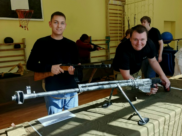 Студенты могли взять оружие в руки, передёрнуть затвор, нажать на курок, примерить на себя обмундирование и снаряжение.