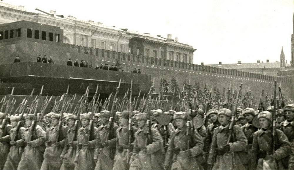 В разгар оборонительных сражений, 7 ноября 1941 г. в Москве на Красной площади прошел парад в ознаменовании 24-й годовщины Октябрьской революции.